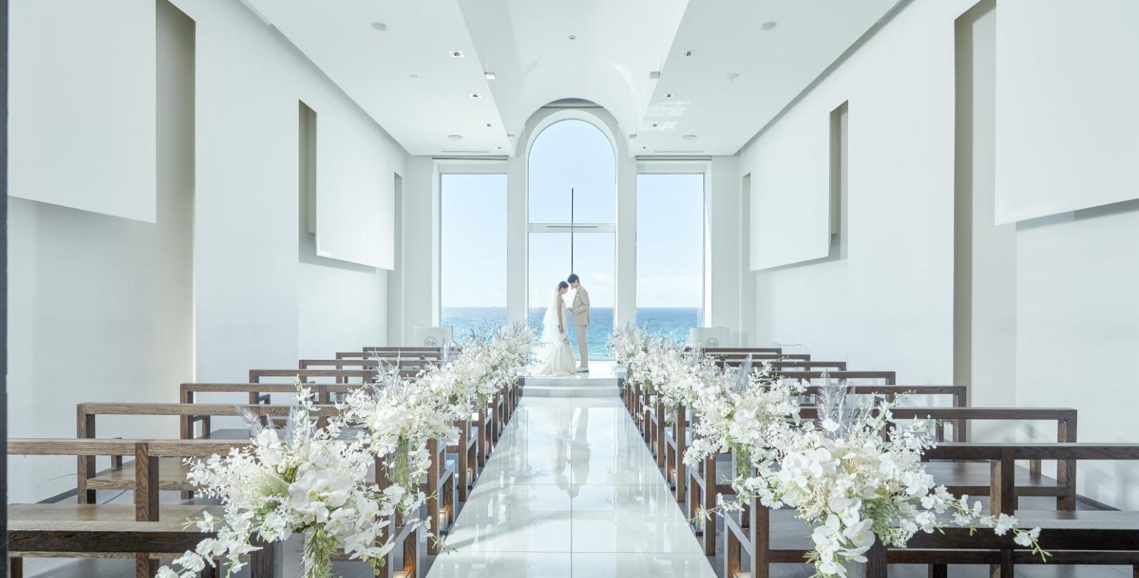 オーシャンビューが最高の式場 白を基調としたシンプルなチャペルですが 正面に海と空の青がチ 口コミ 評判 Hotel Greges オテルグレージュ ウエディングパーク